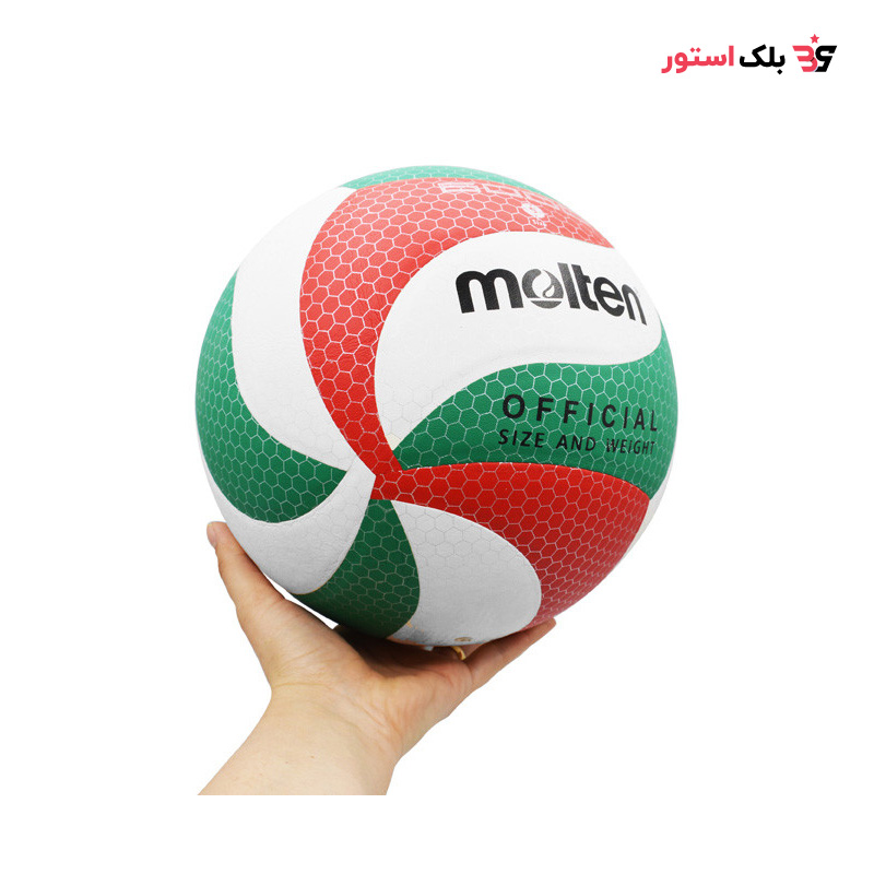 این توپ محصول برند مولتن چین است و با سایز استاندارد ۵ و وزن تقریبی ۲۸۰ گرم، تجربهای خوشدست و کنترلپذیر هنگام پاس و اسپک ارائه میدهد. رویه آن از چرم مصنوعی PU ساخته شده است که علاوه بر دوام بالا، ضد آب و تمیز کردن آن آسان است. طراحی ۱۸ پنل با طرح زنبوری روی سطح توپ، مانع از لیز خوردن توپ در دست بازیکن میشود و کنترل بهتری در بازی فراهم میکند.